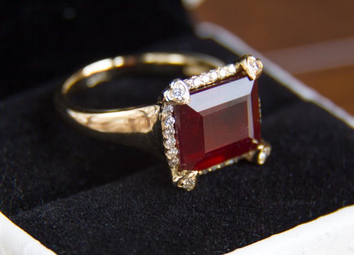10 ct ruby gold ring with diamonds 0.36 ct.