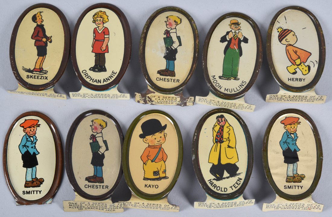 10-EARLY CRACKER JACK TIN COMIC CHARACTER PRIZES