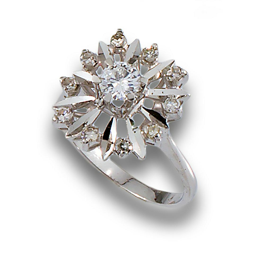 DIAMOND FLOWER RING 18K 750 WHITE GOLD