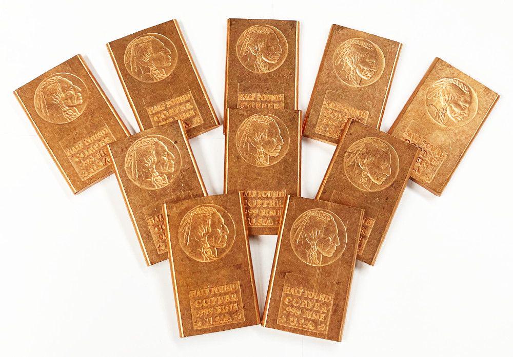 Sold(10) Massive Half Pound Buffalo Copper BarsWinner shall receive a bar precisely resembling the one shown here.See Sold Price
