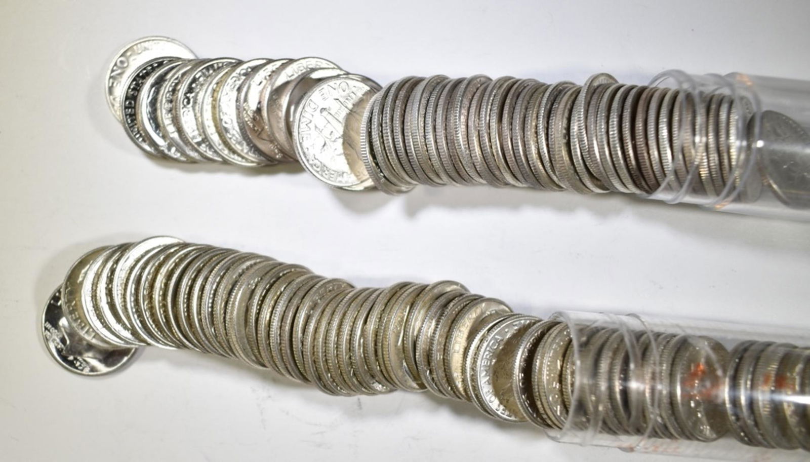 SoldRoll (50) Mixed Date Mint Condition 90% Silver Roosevelt DimesWinner shall receive the exact roll (50-coins) shown here. (BD/B)See Sold Price