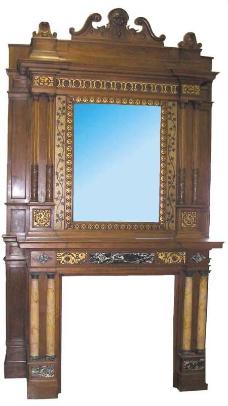 10' NYC made walnut mantle w/marble colums