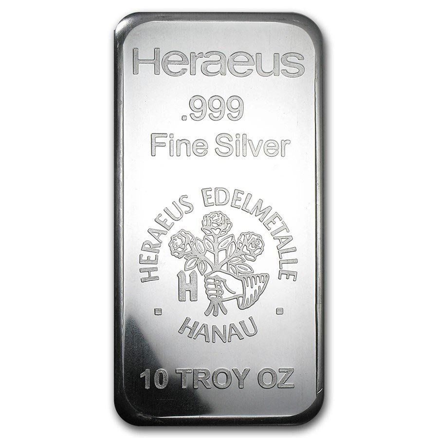 Prooflike Surface Heraeus 10 Ounce Silver Bar