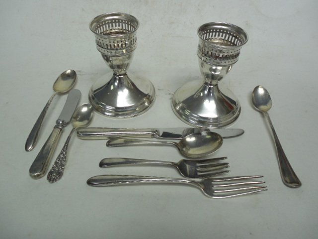 A lot of six antique silver spoons and forksFeb 24, 2026Lot of Sterling Weighted Candlesticks5 days LeftLot of 6 Sterling Silver Spoons5 days LeftLot of 5 Sterling Silver Serving Pieces5 days LeftWallace Grande Baroque Sterling Silver Flatware Service for 12, 86.5 t oz 72 PCSFeb 19, 20268 Vintage Stainless Steel Silverplate Sterling SilverwareFeb 23, 2026A PAIR OF SILVER CANDLESTICKS. 400 grams overall. 14 cm high.2 days LeftA PAIR OF SILVER CANDLESTICKS. 410 grams overall. 13 cm high.2 days LeftPair of 9" Tall Sterling Silver Weighted Candlesticks - 885 Grams5 days Left(10pc) SILVER FORKS, STERLING SHAKERS, & SPOONFeb 22, 2026A PAIR OF SILVER CANDLESTICKS. 530 grams overall. 18 cm high.2 days Left(6) STERLING SILVER WEIGHTED ITEMSFeb 22, 2026A PAIR OF SILVER CANDLESTICKS. 360 grams overall. 9.5 cm high.2 days Left8 Silver Plated Towle Dinner ForksFeb 07, 2026A PAIR OF SILVER CANDLESTICKS. 310 grams overall. 10.5 cm high.2 days Left(5) STERLING SILVER WEIGHTED CANDLESTICKSFeb 22, 2026