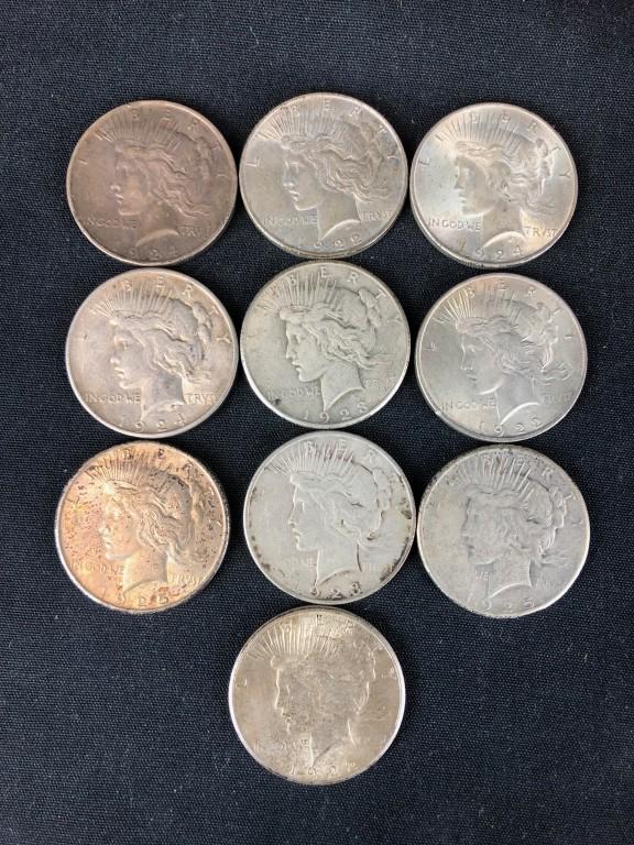 10 Peace Silver Dollars Common Dates VG to XF