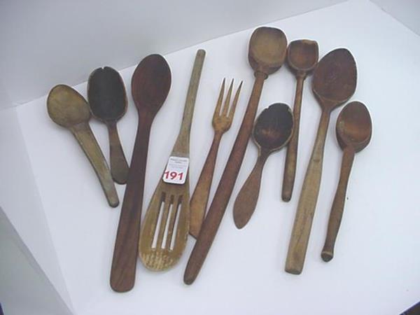 10 Primitive Hand Carved Serving Utensils