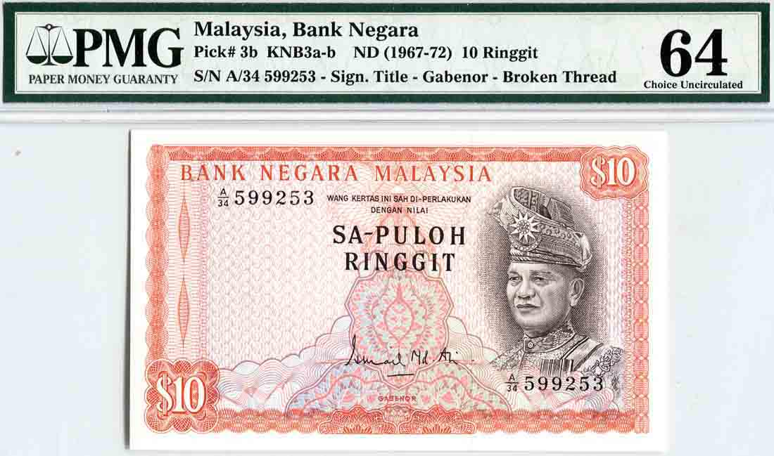 10 Ringgit, 1st Series Ismail Md.ali (knb3b:p3b) S/no.