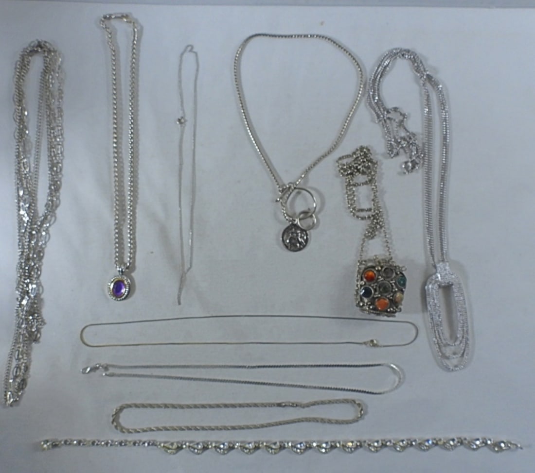 LOT ASSORTED STERLING JEWELRY FINDINGS, W. 7.1 OZ.5 days LeftLot of Silver Tone JewelryMar 05, 2026Lot of Sterling NecklacesMar 03, 2026Lot 5 Sterling Pendants With Sterling ChainsMar 10, 2026MEGA LOT LADIES JEWELRY NECKLACES RINGS (44)Mar 08, 2026LADIES NECKLACES W/ COLORFUL BEADS LOT OF SIXMar 07, 2026MEGA LOT SILVER & GOLD TONED LADIES JEWELRY (17)Mar 07, 2026An Estate Lot of Seven Necklaces, Late 20th Century, 63FK2 days LeftAn Estate Lot of Eight Necklaces, Late 20th Century, 69FK2 days LeftAn Estate Lot of Six Necklaces, Late 20th Century, 71FK2 days LeftAn Estate Lot of Six Silver-Toned Necklaces, Late 20th Century, 67FK2 days LeftLot of Sterling Necklaces and PendantsMar 07, 2026Jewelry Sterling Silver Lot- Pendants, Earring, ectGroup of 15 Silver-Tone and Gold-Tone Necklaces - Jewelry CollectionMar 04, 2026Large Collection of Ten Sterling Silver Chains and Necklaces, Italian and Indian Origin2 days LeftVINTAGE & ANTIQUE LADIES FASHION JEWELRY (7)Mar 08, 2026
