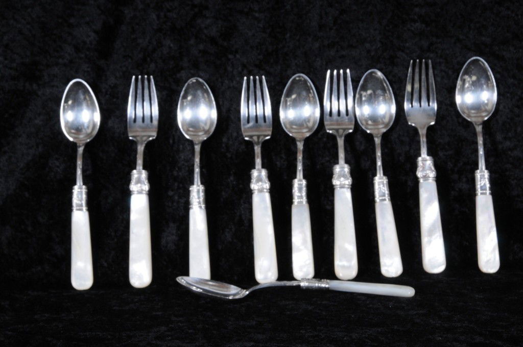 10 STERLING SILVER & M.O.P. FLATWARE. 6 SPOONS AND 4