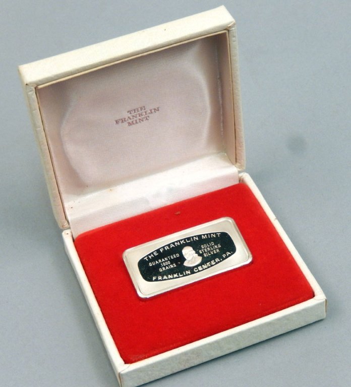 ASSORTED SILVER BULLION INGOTS, LOT OF NINE1 day Left4 1/10oz Silver Coins, 1/4 oz Silver Round, 1 0.999 Silver $2 BillMar 28, 20261000 Grain Sterling Silver Space Anniversary Ingot by Franklin Mint1 day Left10,000 Grain Sterling Silver BarMar 10, 2026Monarch Precious Metal 1 oz .999 Fine Silver Hand Poured Ingot/ BarMar 14, 2026.999 FINE SILVER INGOT BAR 52 GRAMMar 29, 2026GEIGER 100 GRAM FINE SILVER BAR GERMANYMar 29, 2026(4) PIECE SILVER GROUP INCL. SILVER BARS3 days LeftMonarch Precious Metal 2 oz .999 Fine Silver Hand Poured Ingot/ BarMar 14, 202610 TROY OZ PURE SILVER BAR SILVER TOWNMar 29, 2026Five Ounce Pure Silver BarMar 20, 2026Extremely Rare & Unusual Low Serial Number 25 ozt .999 Silver BarMar 11, 2026Vintage Morgan Design 1oz Silver Bar6 days LeftASSORTED FINE SILVER BULLION BARS/ ROUNDS - (9)4 days LeftEngelhard 10oz Silver BarMar 22, 20261 Troy Ounce .999 Fine Silver Bar – Oxford New York Alaska FloridaMar 14, 2026