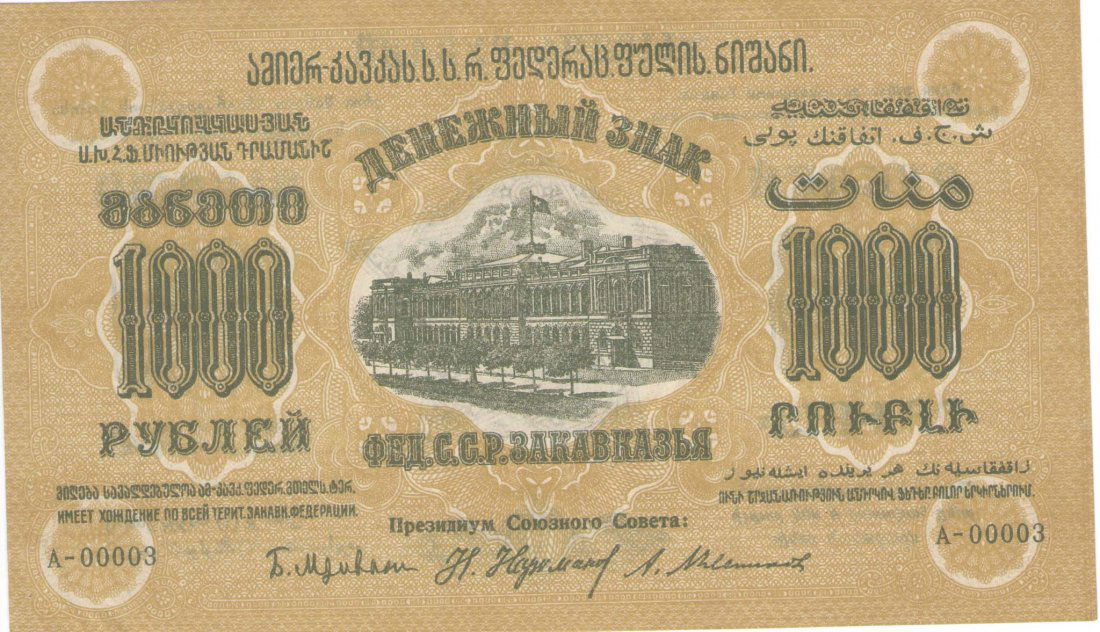 1000 RUBLES 1923 FED.SSR