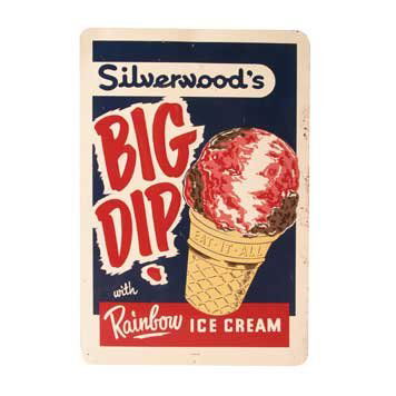 Diamond Ice Cream Porcelain Door PushMar 14, 2026Enjoy Frozen Gold Ice Cream Single-Sided Porcelain SignMar 14, 2026Major Treat Ice Cream Curb SignMar 08, 2026T&M Dairy Ice Cream SSP Advertising SignMar 14, 2026Sealtest Ice Cream signMar 27, 2026Take Some Home Visit Our Ice Cream Dept Store SignMar 14, 2026Union Ice Cream Curb Service Double Sided Porcelain SignMar 20, 2026Big Bear Finest Quality Ice Cream Single Sided Tin SignMar 20, 2026Silver Woods Porcelain Door PushMar 14, 2026Meadow Gold Ice Cream Twin Popsicle Single Sided Tin Sign In FrameMar 20, 2026Buttercup Ice Cream It's Famous Because It's Good Double Sided Tin SignMar 21, 2026We Serve Moore's Ice Cream Emb. SST Sign w/ Soldier LogoMar 21, 2026McCarthy's Deluxe Ice Cream Pint Container SSP SignMar 14, 2026Dad's Diet Root Beer Single Sided Tin Bottle Cap SignMar 21, 2026(2) Sealtest Ice Cream Aluminum & Brigham's Ice Cream Advertising Display SignsMar 14, 2026"Enjoy Bancroft Superior Ice Cream" Porcelain SignMar 14, 2026
