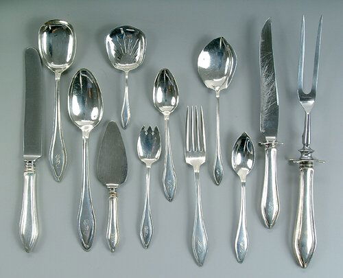296pc. French Antique Sterling Silver and Vermeil Flatware Set - Excellent Condition !!Stieff Sterling Silver Flatware Service, 173 PiecesMar 28, 2026(24) AMERICAN STERLING 'KINGS' FLATWARE, GORHAM AND SHREVE CRUMP & LOWMar 29, 2026(87pc) International Prelude Sterling Silver Flatware Set5 days Left5 PIECES ENGLISH FLATWARE3 days LeftTOWLE STERLING 'LADY CONSTANCE' FLATWARE FOR 86 days LeftInternational Sterling Spring Glory Flatware Set for 96 - 623 Pieces5 days LeftWhiting Manufacturing Sterling Silver Flatware15 hrs LeftChristofle "Albi" Sterling Silver Flatware SetMar 29, 202625 PCS. STERLING SILVER FLATWARE3 days Left50pc Tiffany Hampton Sterling Silver Flatware3 days LeftForty One Piece Group of Assorted Silver Flatware, 19th/20th c., App. Total Sterling Wt.- 28.71 TroyMar 27, 2026(38) CHRISTOFLE SILVERPLATE FLATWARE SERVICE IN BRANDED CASEMar 27, 2026(7) COLLECTION OF AMERICAN STERLING SILVER FLATWAREMar 29, 2026Tiffany Pattern Sterling Flatware, 118 Pieces7 days Left13 PIECES OF STERLING SILVER AND PLATED FLATWARE6 days Left