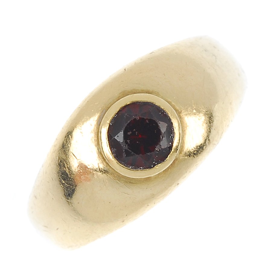 ROUND CUT RHODOLITE GARNET BEZEL SET STATEMENT RING