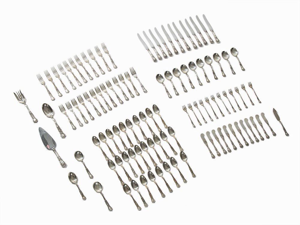 105-Piece Silver Flatware, Rococo Style, Gorham, USA,