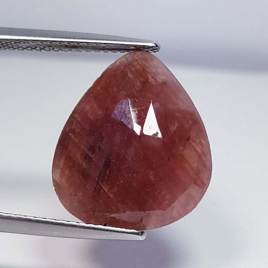 Sold15.25 ct Natural Faceted RubyNo Reserve! Title:15.25 ct Natural Faceted Ruby Color/Clarity:Opaque Gemstones:Gemstones Carat Weights:$15 Size/Dimensions:20.50 x 15.70 x 5.00 Additional Information:Pear - Bruma Shipping: Worldwide:See Sold Price
