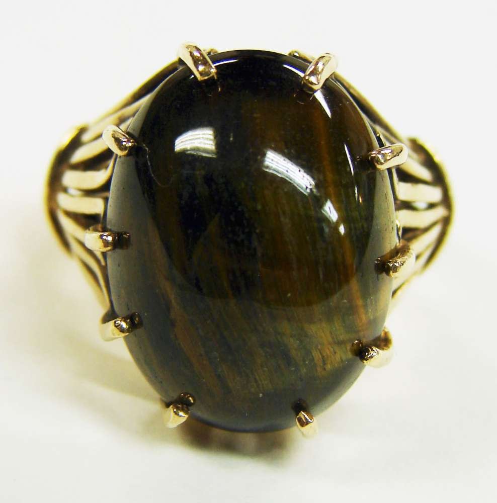 Elegant 14k Yellow Gold Oval Cabochon Brown Banded Agate Solitaire RingBidhaus4.2(840)$1002 days Left