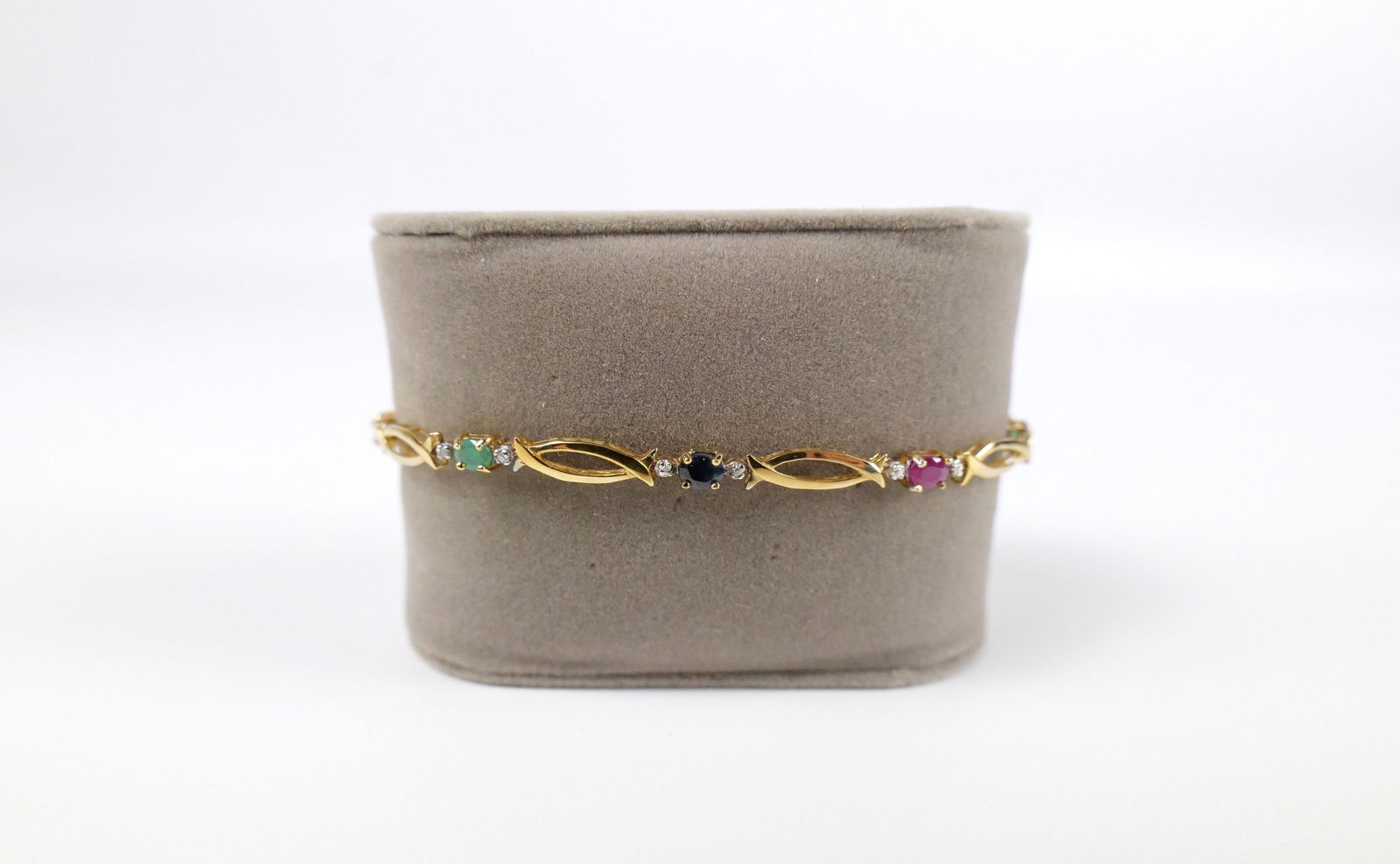 10K Gold, Emerald, Ruby, and Sapphire Bracelet