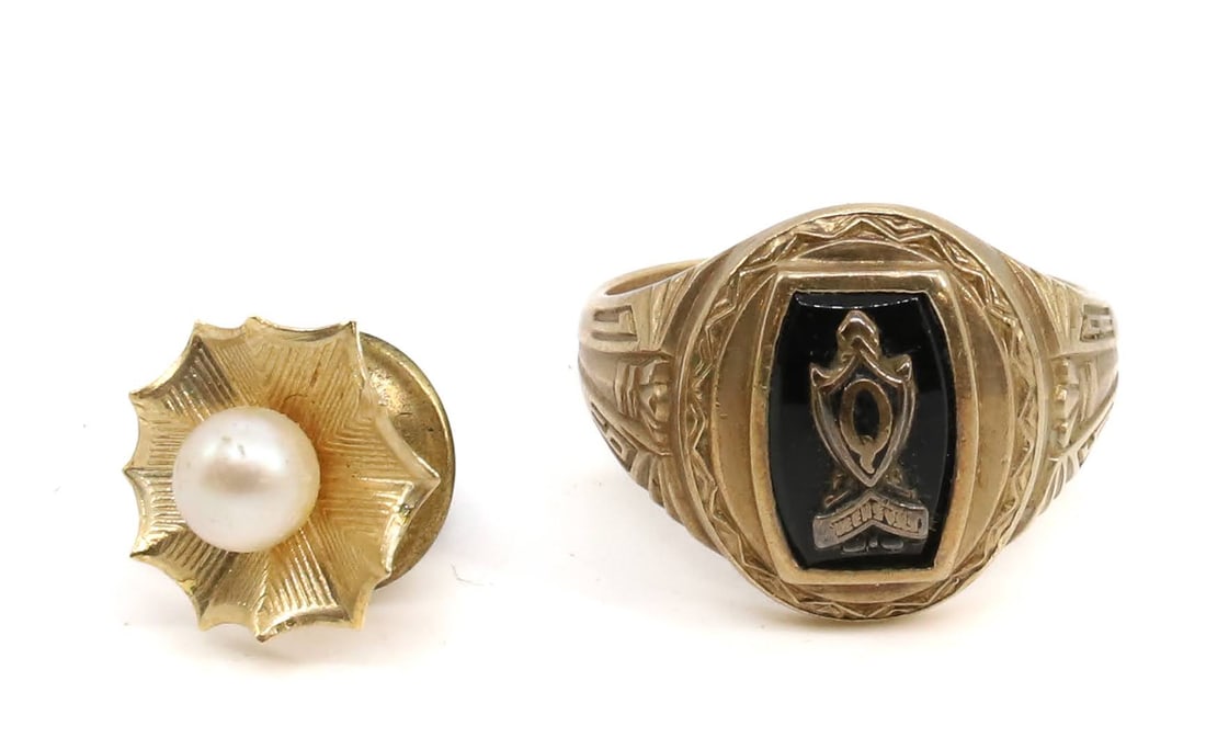 10K GOLD RING AND TIE TACK