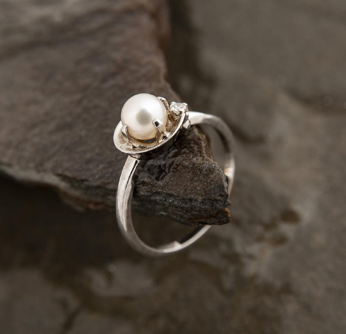 Pearl and Diamond Ring in 18K White Gold Size US 6