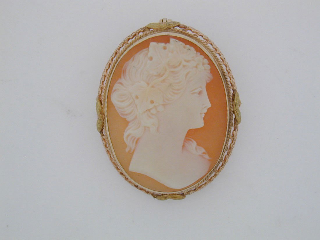 Antique 14K gold carved shell cameo pin/pendant. Engraved gold frame. Clasp markedTremont Auctions4.6(313)$200(1 bid)4 days Left