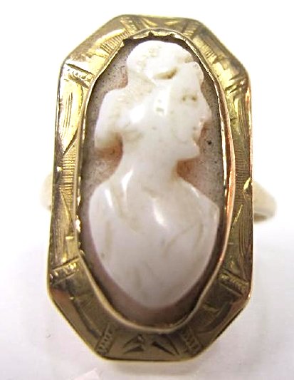 10K Yellow Gold Cameo Ring, Size 4