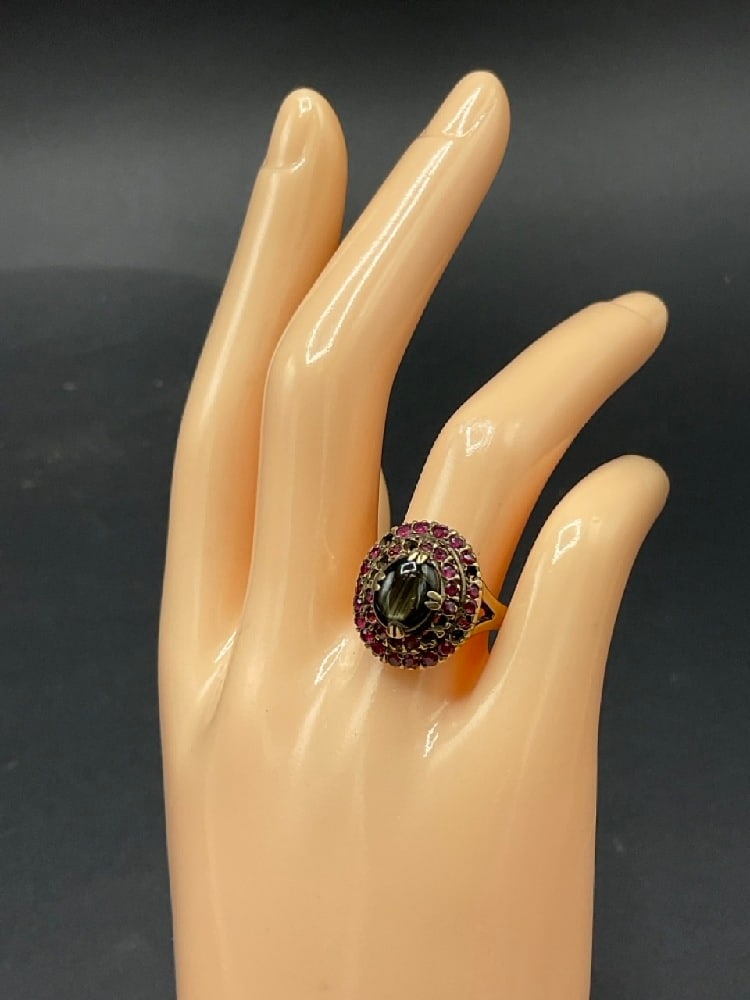 10K Yellow Gold Ruby and Cats Eye Gemstone Ring