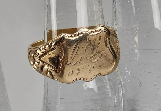 10K Yellow Gold Signet Ring "GG'' Initials