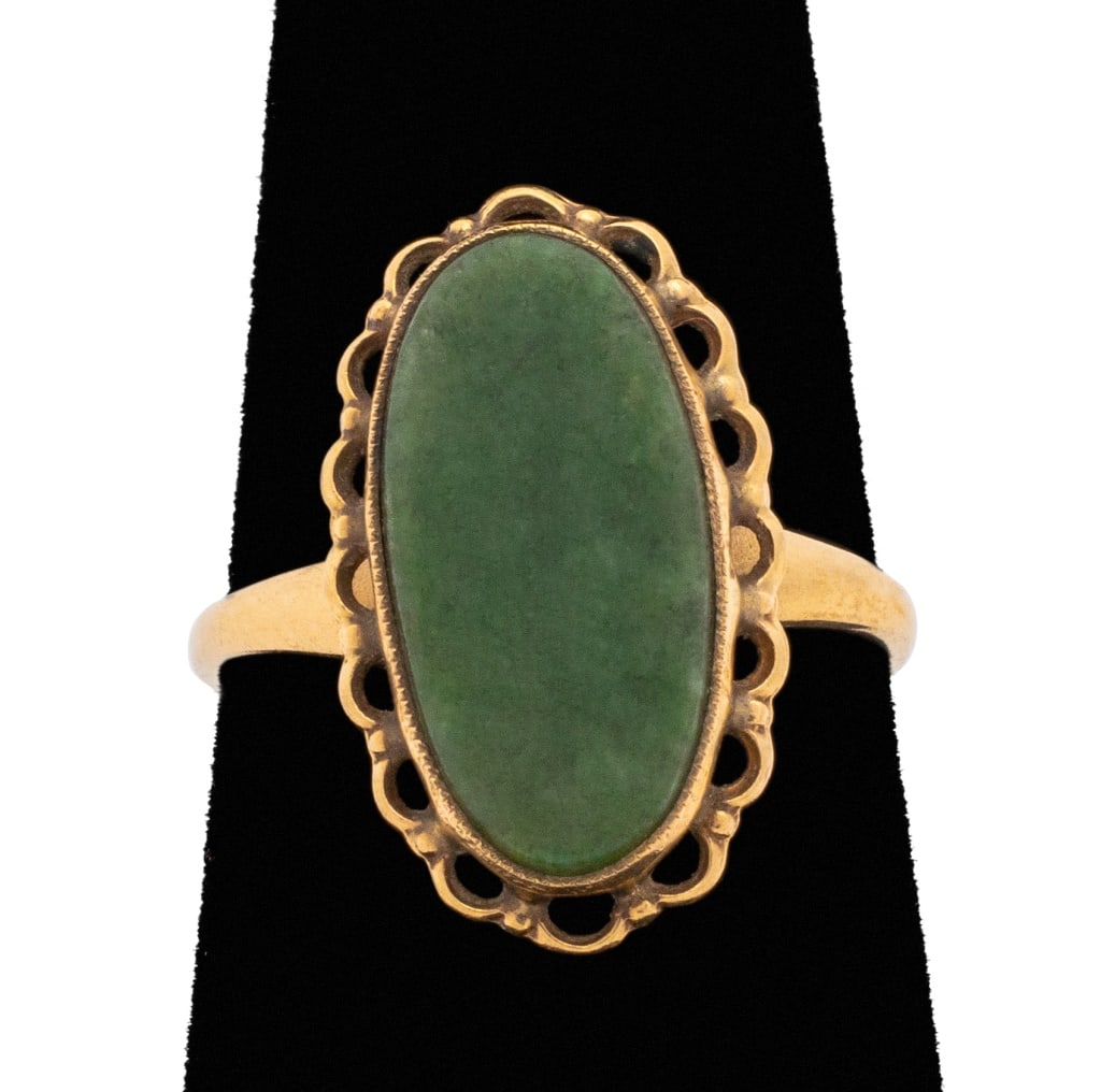 10K Yellow Gold Spinach Jade Ring