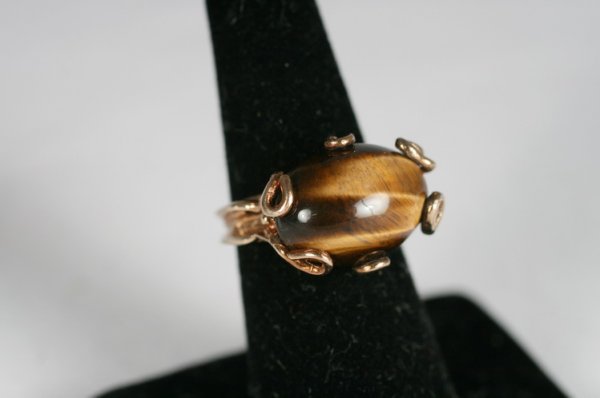 Solid Yellow Gold Tiger Eye Cabochon Wood Ring Size 5