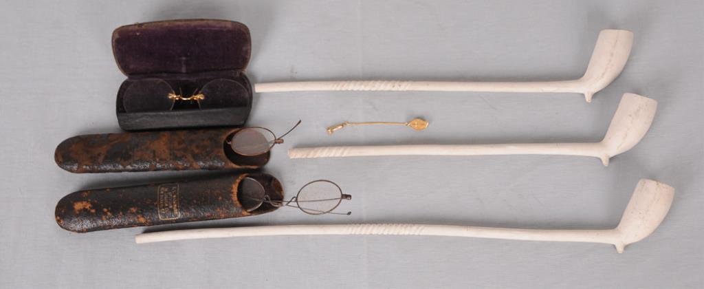 10kt Pin, Clay Pipes, Spectacles Lot includes: Small