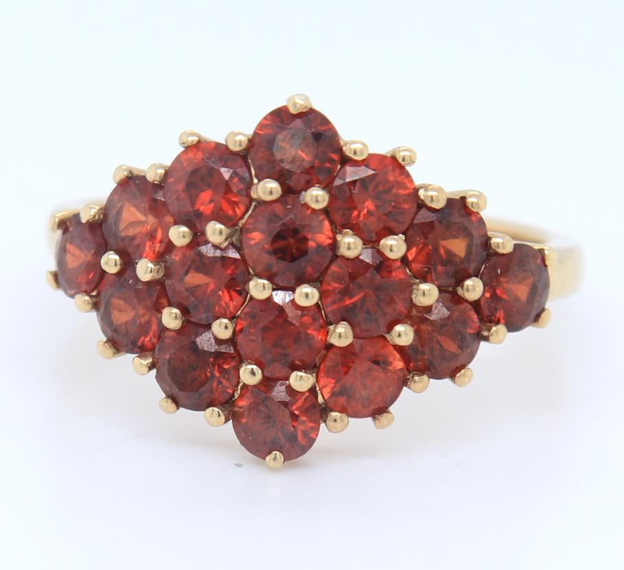 10KT Yellow Gold Red Spinel Cluster Ring