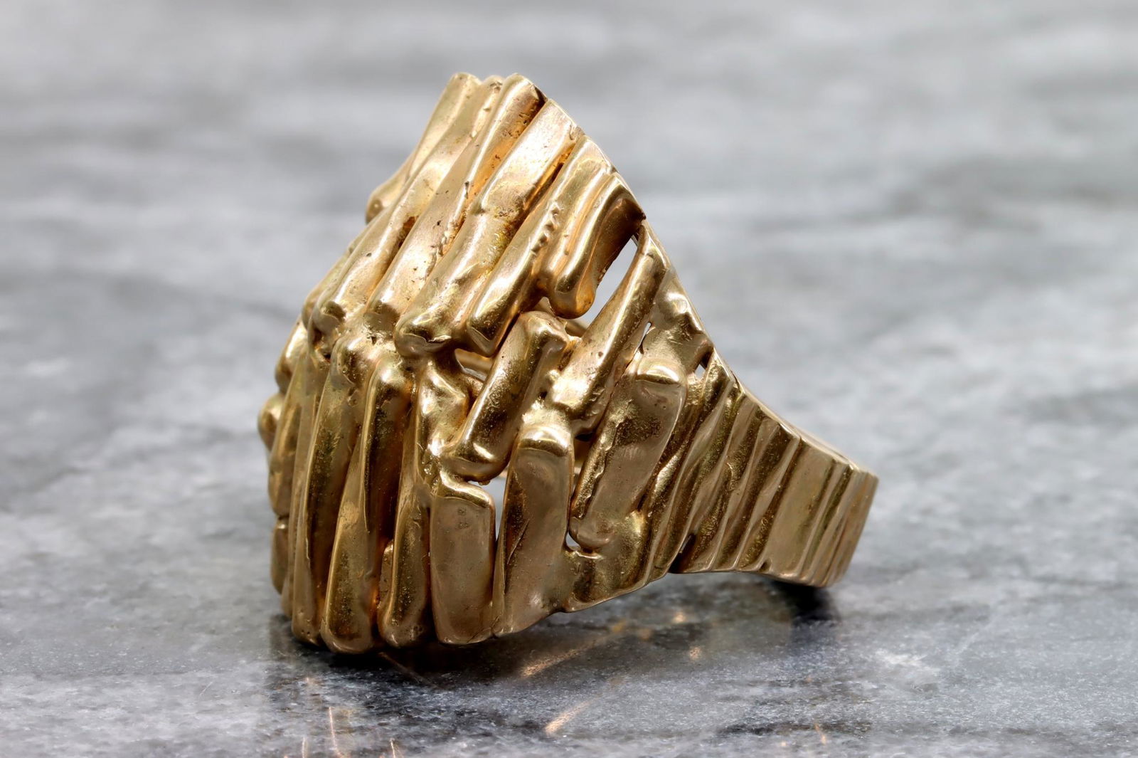Sold14K Yellow Gold Brutalist Band Ring size 5 1/414K brutalist band ring size 5 1/4, faint 14K stamp.See Sold Price