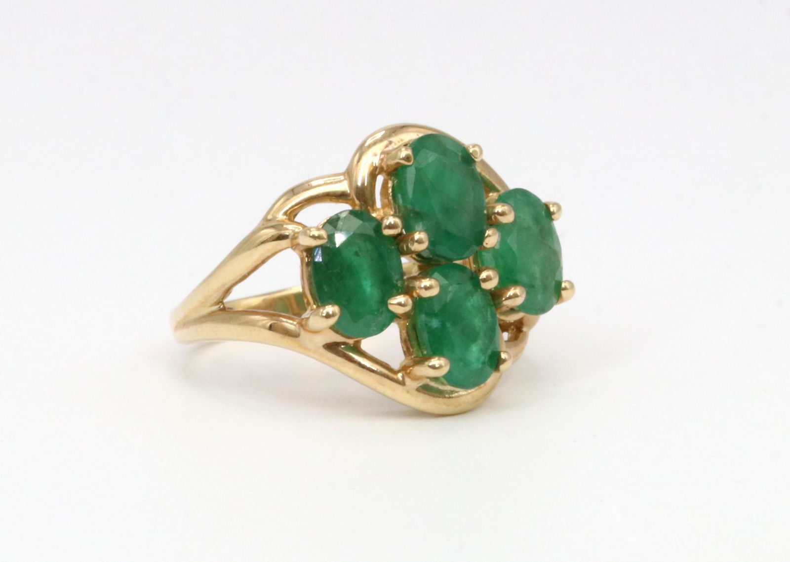 Sold14k Gold Emerald Ring14k Gold Emerald Ring three emeralds each approximately 5 mm x 5 mm the ring is unmarked, but tests 14k gold ring size 10 1/4, weight is 5.1 grams gross IN HOUSE SHIPPING Within Continental USA $25 DUSee Sold Price