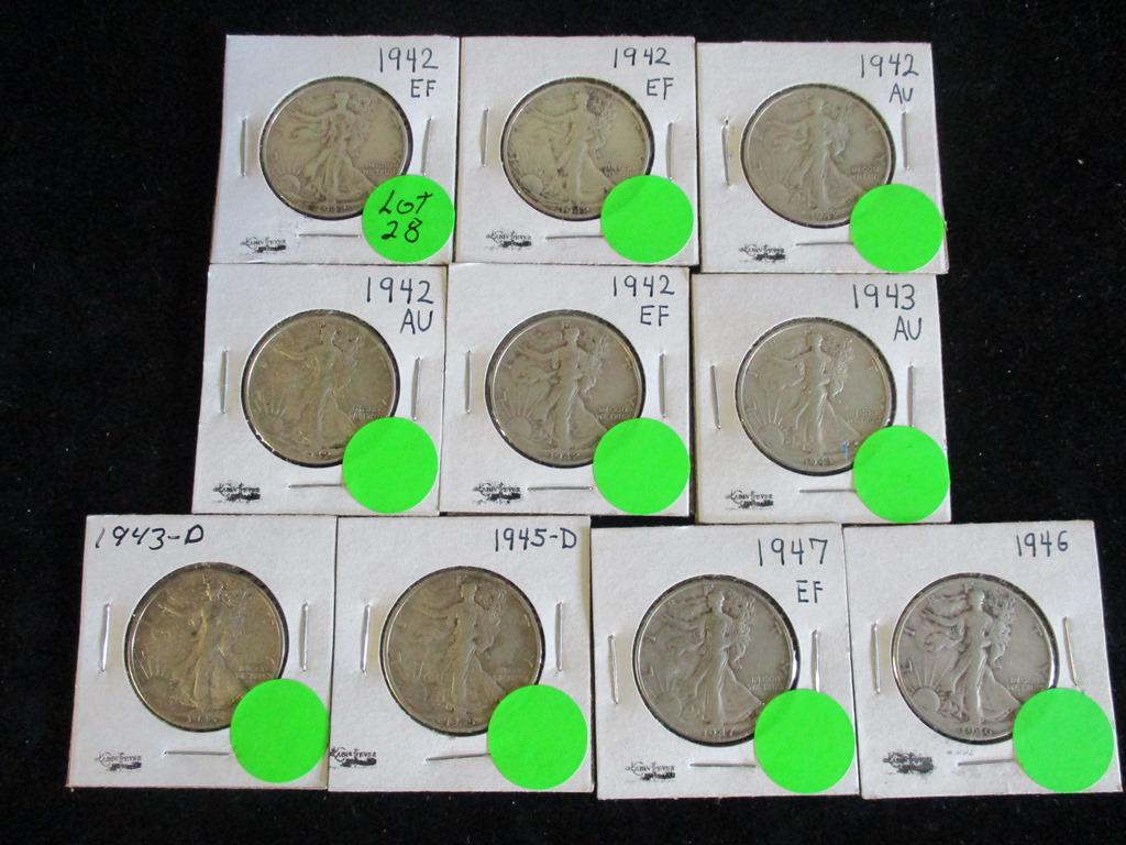 10PC Assorted Walking Halves 1922-1947