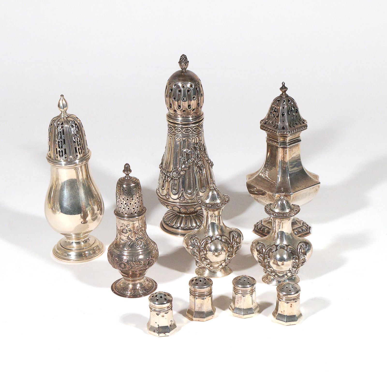(10pc) SILVER SUGAR CASTERS & OTHER
