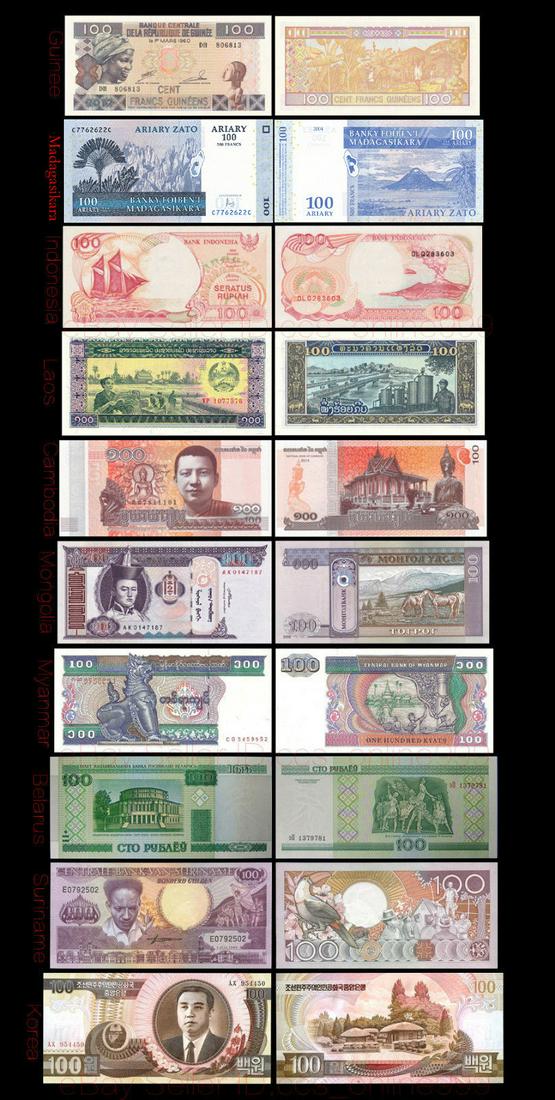 10Pcs Banknotes 10 Different Countries Paper Money