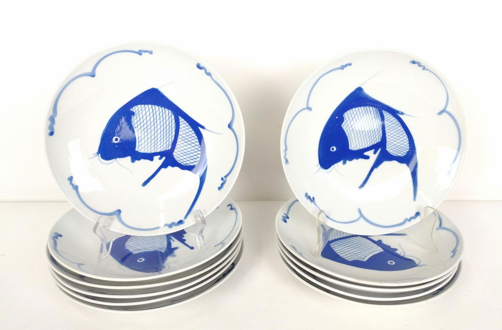 11 Blue & White Fish Plates