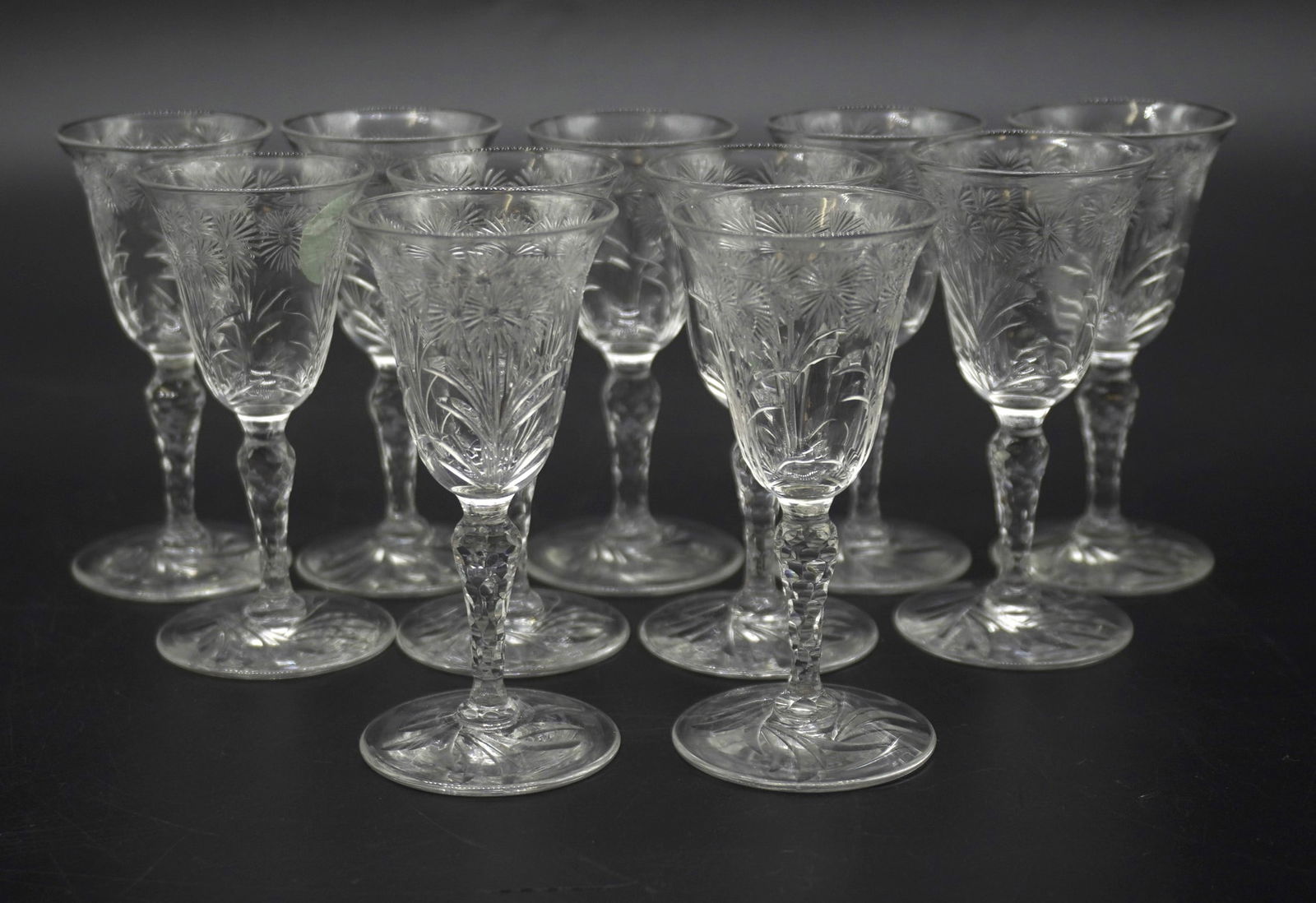 11 ELEGANT ERA BLOWN ETCHED CORDIALS