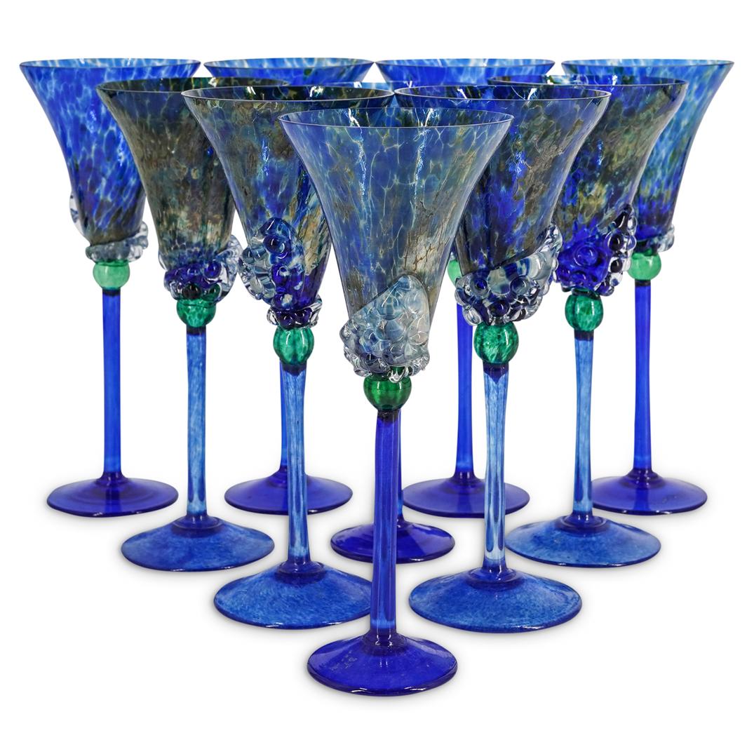 (11 Pc) Blue Murano Wine Glasses