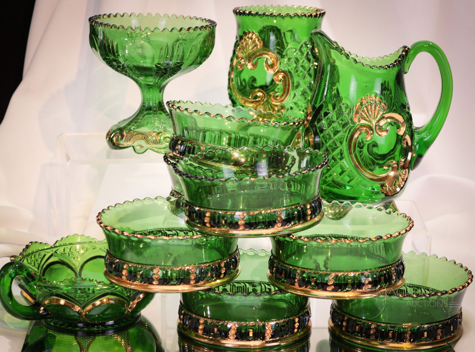 Lot of 7 Glass Vases, Bowls, Fish Decanter, Green & YellowMar 21, 2026Green Depression Uranium Glass T & S Handmaid Measure Cup, Mixing Bowl and Hazel Atlas Candy DishMar 30, 2026Northwood EAPG Opaque Custard Glass Berry Bowl, Louis XV Bowl and Footed Spooner w/ Banana BoatMar 30, 2026A Collection of Nine Green Empoli Glass ArticlesTwelve Flashed & Cut Glass Wine Glasses & Six Cordials5 days LeftCOLLECTION OF EARLY GLASS INC. PR OF RINSERS, FLIP GLASS, TUMBLERS, 2 DECANTERS- 18 WINE ORMar 15, 202612 EAPG Pressed Glass GobletsMar 18, 20269 Pieces American Brilliant Cut & EAPG Glass12 EAPG Pressed Glass GobletsMar 18, 2026
