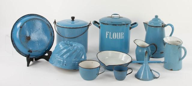 11 Pcs. Blue and White Graniteware