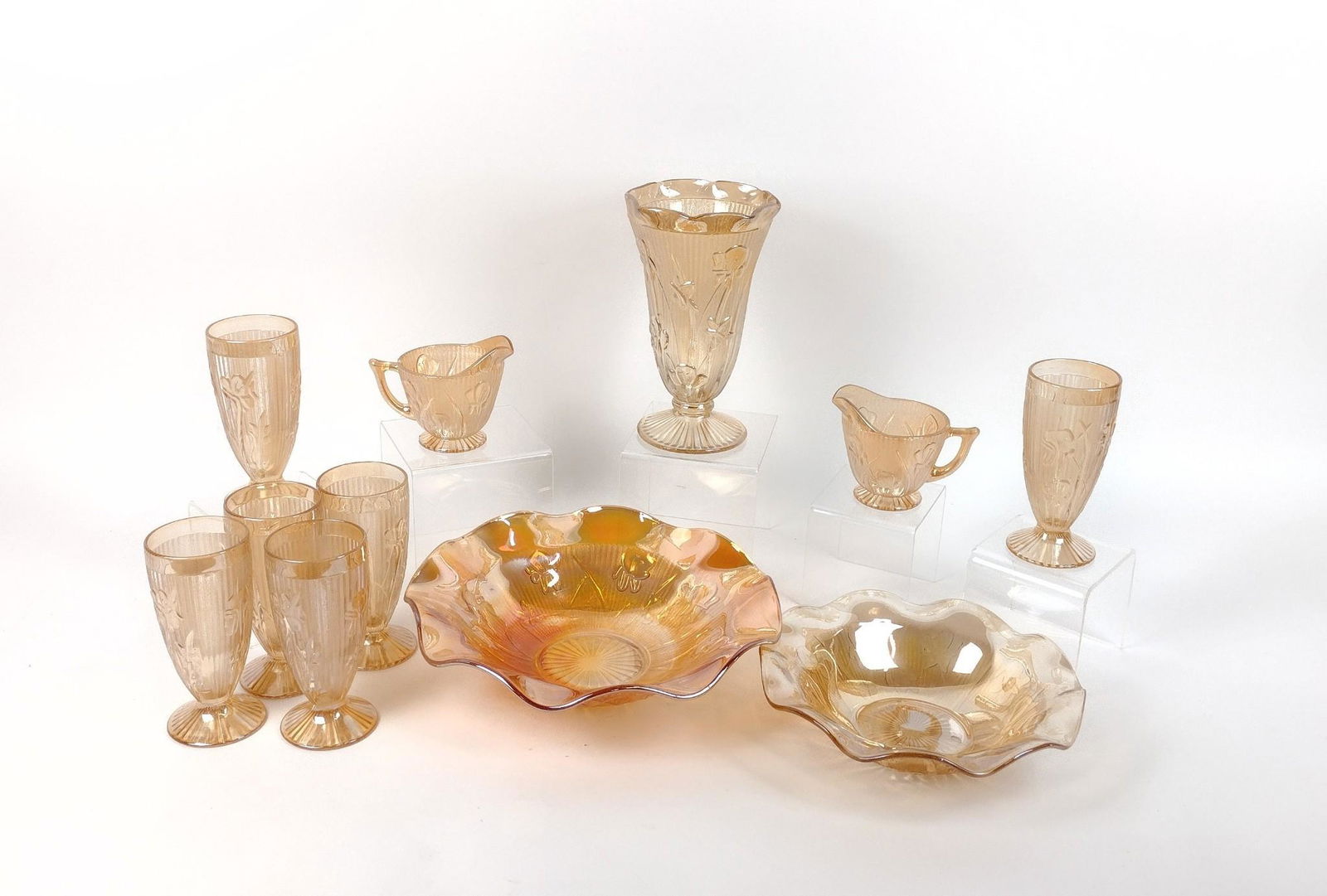 11 Pcs Iris Herringbone Carnival Glassware