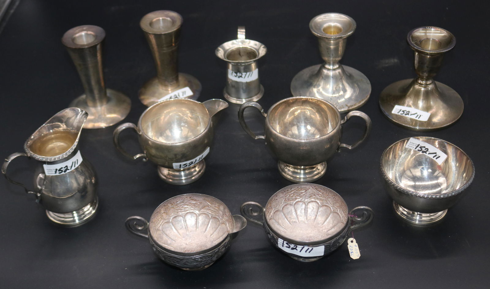 8 pc Lot Weighted Sterling Silver 33.616 OZT6 days LeftLot of Weighted Sterling Silver PiecesMar 14, 2026Lot of Assorted Weighted Sterling Silver PiecesMar 14, 2026Sterling Silver and Silverplate LotMar 07, 2026Lot of Weighted Sterling Silver CandlesticksMar 14, 2026Lot Of Weighted Sterling Silver Three Piece Creamer, Sugar Bowl And Footed Bowl Set 4"X3"Mar 08, 2026DUCHIN CREATIONS AND OTHER WEIGHTED STERLING SILVER CANDLEHOLDERS AND SHAKERS, LOT OF EIGHTMar 04, 202614 Piece Sterling Silver LotMar 03, 2026Lot of 7 Pewter/Silverplate ArticlesMar 08, 2026LOT OF SILVERPLATE DESSERT CUPSMar 15, 2026STERLING SILVER LOT- TOTAL OF 9 PCS.19 hrs LeftSTERLING SILVER WEIGHTED LOT- TOTAL (10) PCS.19 hrs LeftA Lot of 4 Silver Plated Altar CandlesticksMar 03, 2026Russian Silver Items2 days Left4 SILVER CUPS & 1 CAN, 1 STERLING THE OTHERS COIN APPROX. 14.1 TROY OZMar 15, 20265 Sterling Weighted Candlesticks, 1 Cream & 2 Sugars3 days Left