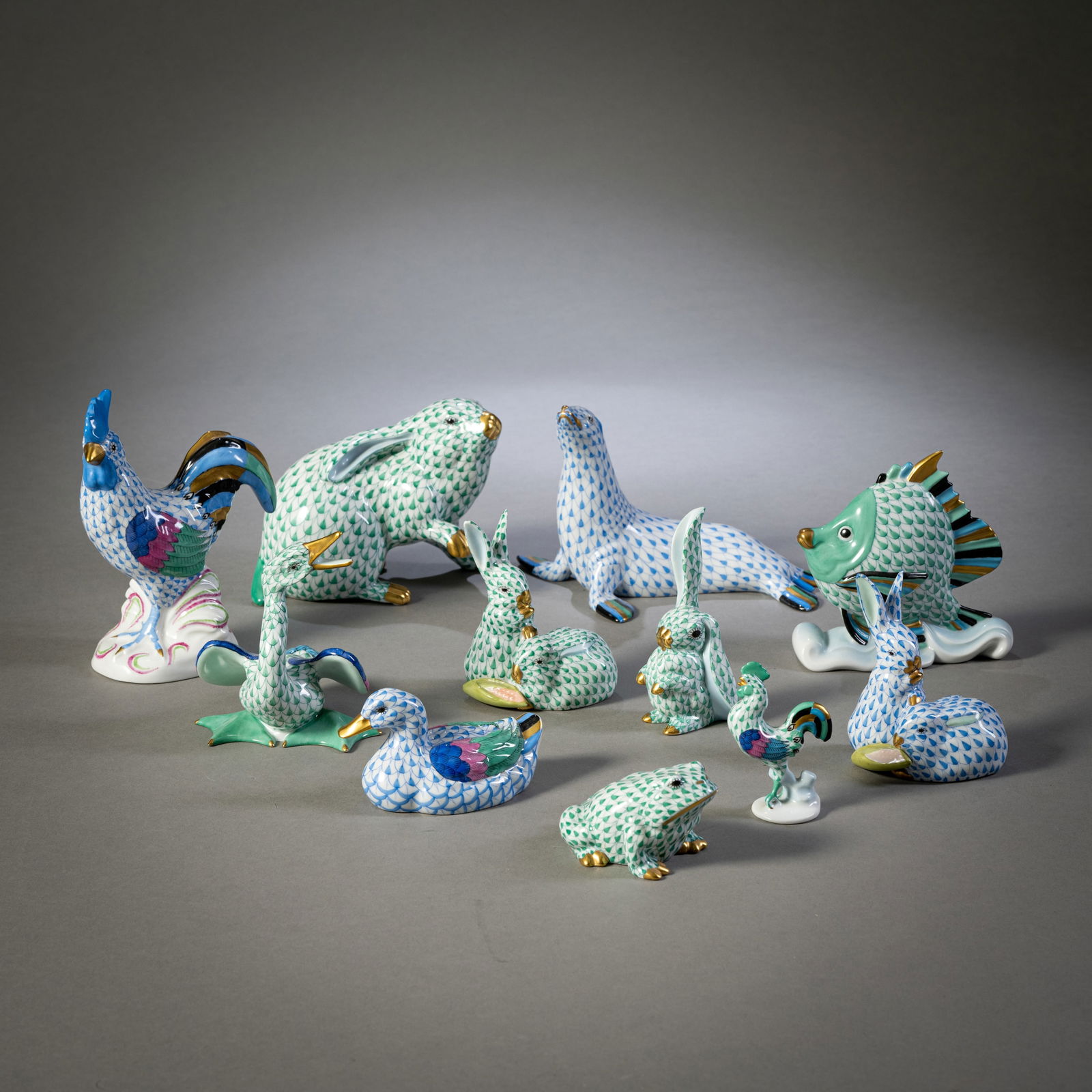 11 POLYCHROME PAINTED PORCELAIN ANIMALS