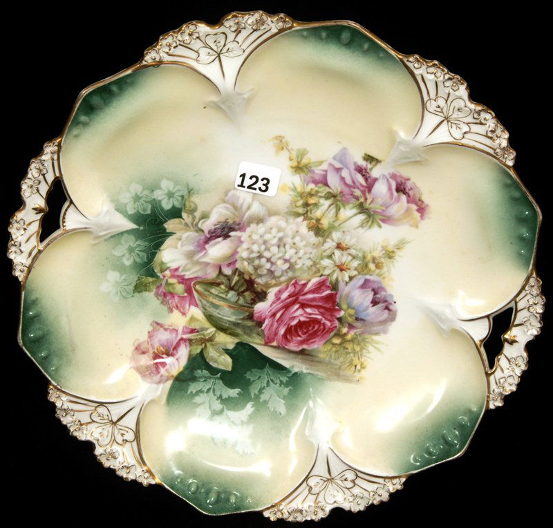 11" RSP POINT AND CLOVER MOLD TWO HANDLED CAKE PLATE