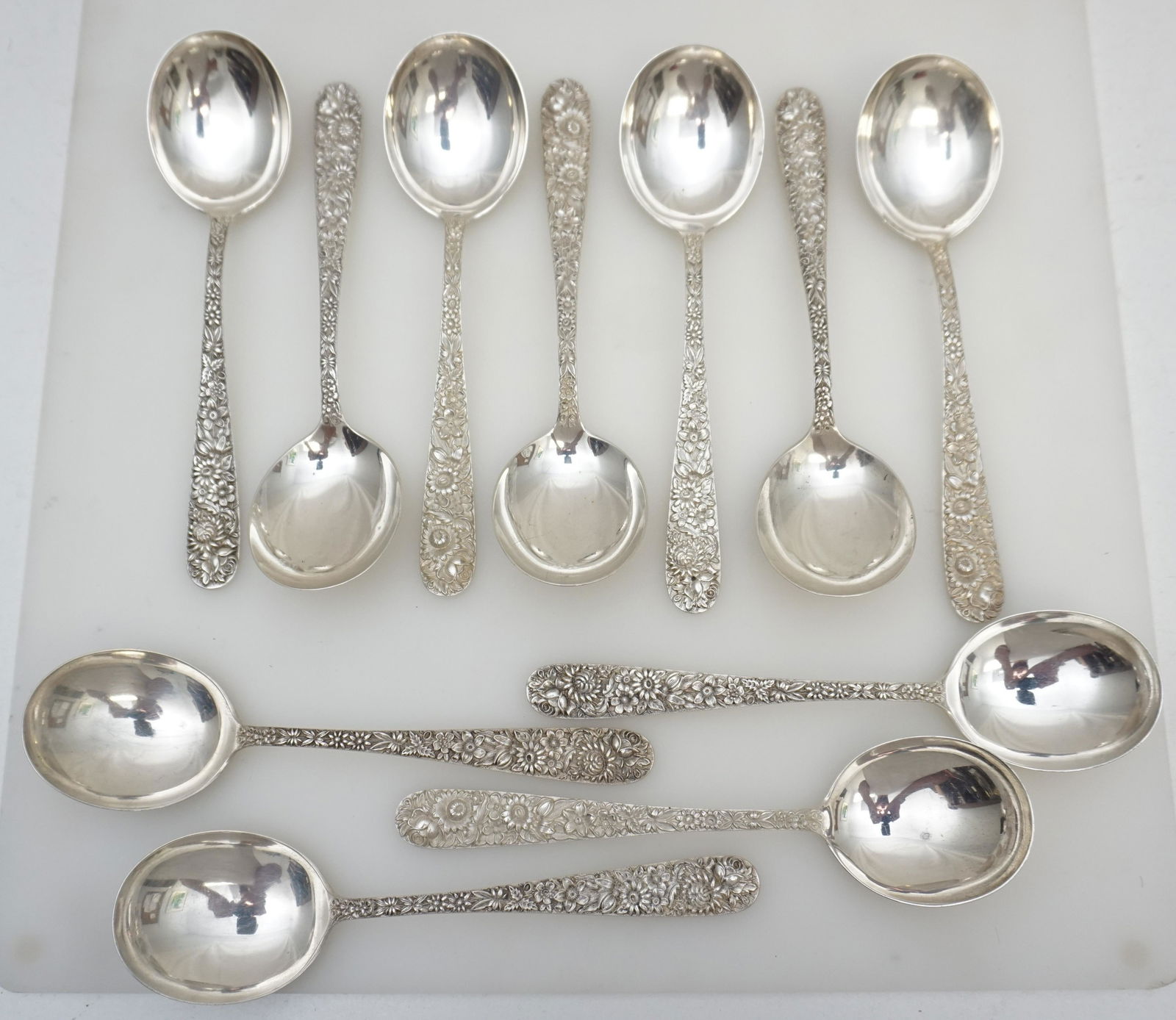 11 STERLING S. KIRK REPOUSSE GUMBO SPOONS