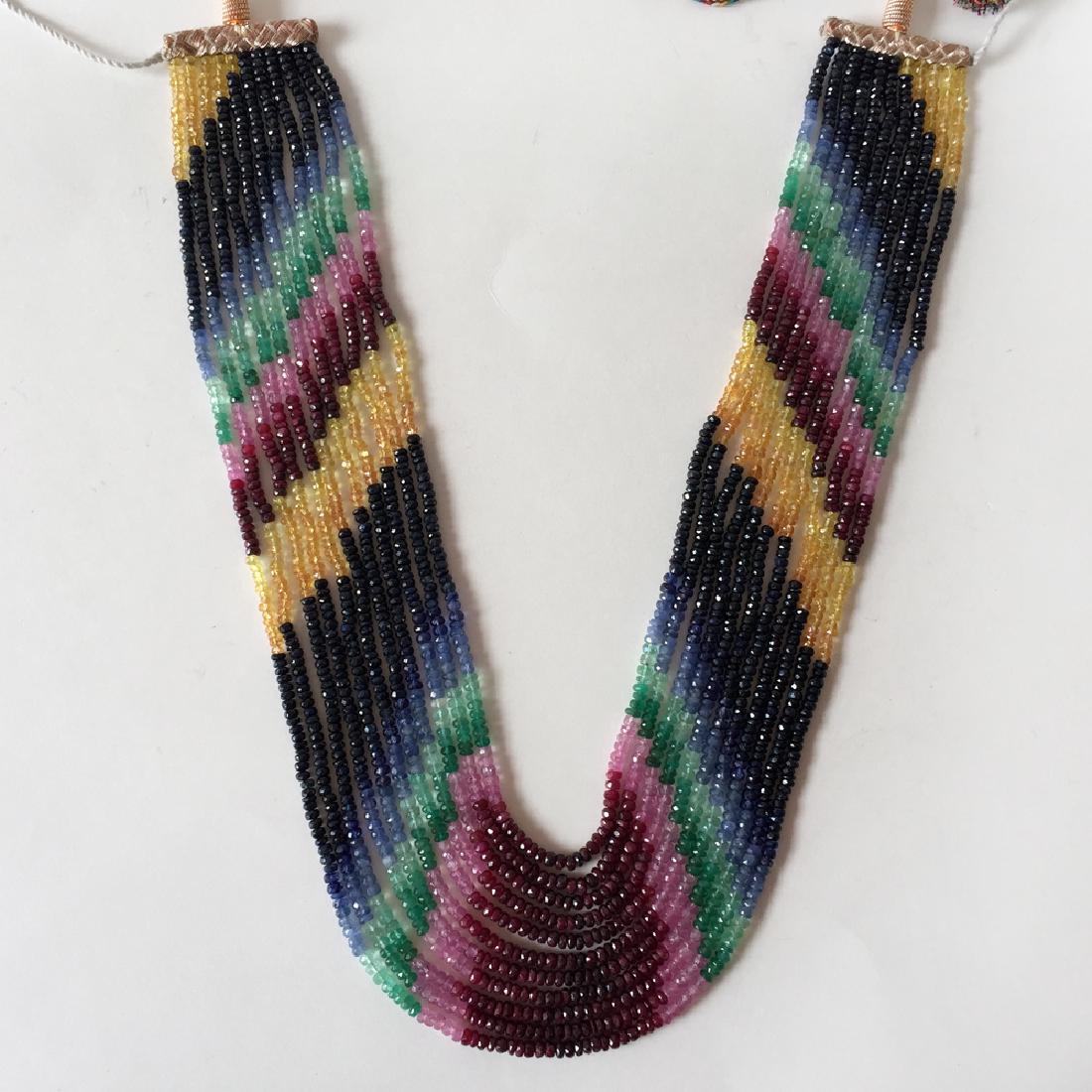 11 strands faceted ruby, emerald, sapphire beads