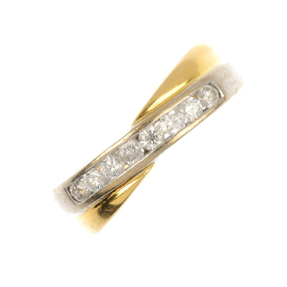 (112189) An 18ct gold diamond crossover ring.