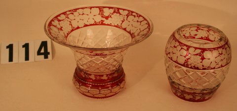 114) 2-PCS.:BOHEMIAN GLASS RUBY CLEAR COMPOTE, H.